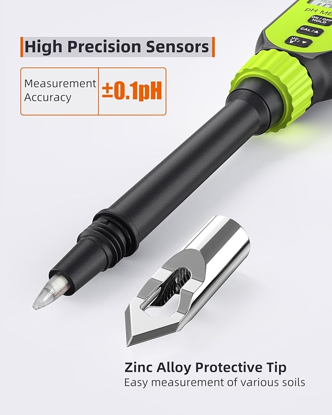 Digital Soil pH Meter – LCD Display with Sensitive Probe & Zinc Alloy Tip, Garden & Lawn Tester with 2 Batteries