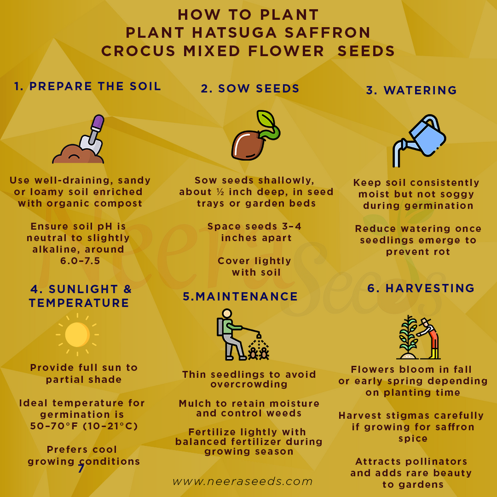 Blooms may appear in 2nd year or later as crocus plants mature from seed.