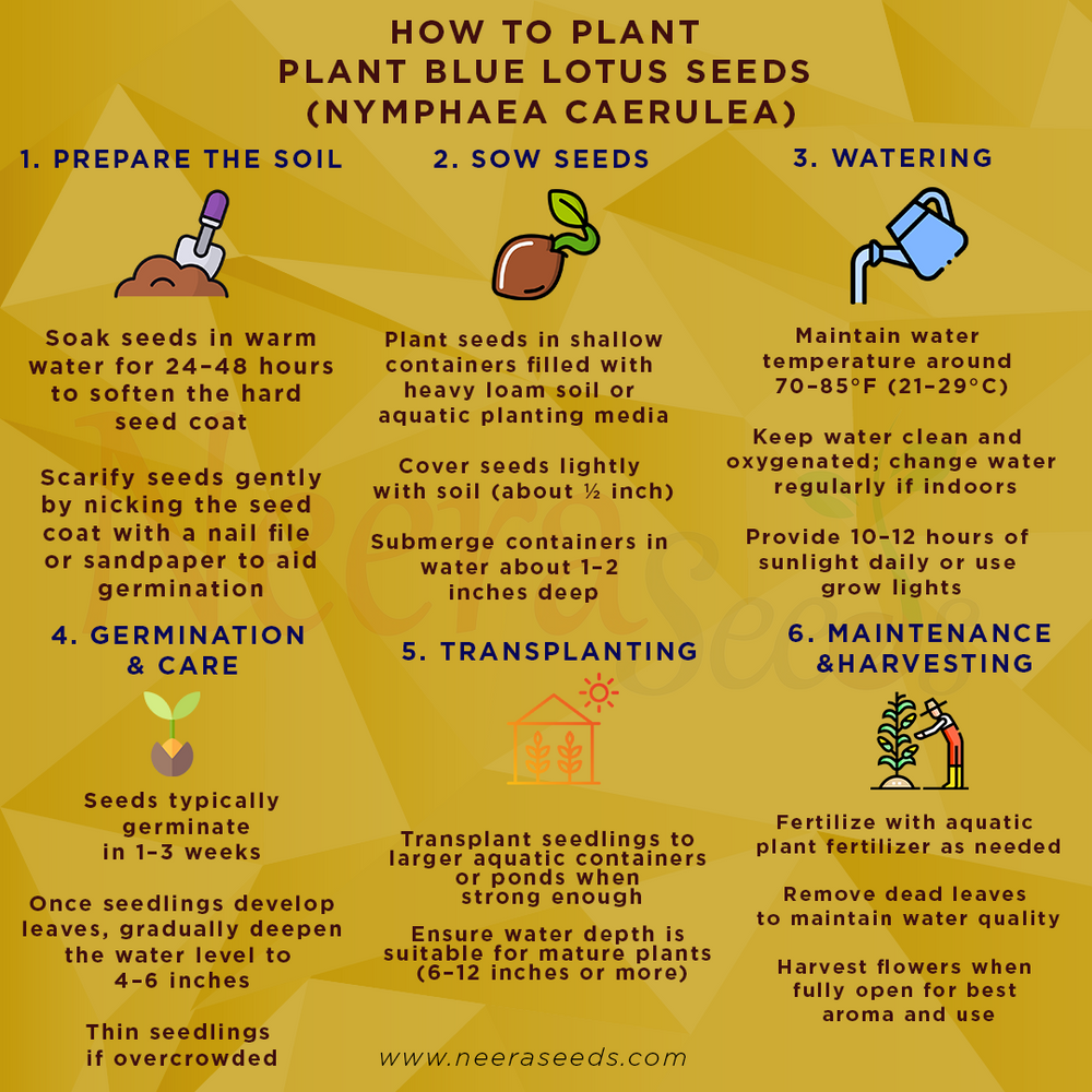 Plant seeds in shallow containers with 6-12 inches of still, warm water. Maintain water temperature around 70-85°F (21-29°C).