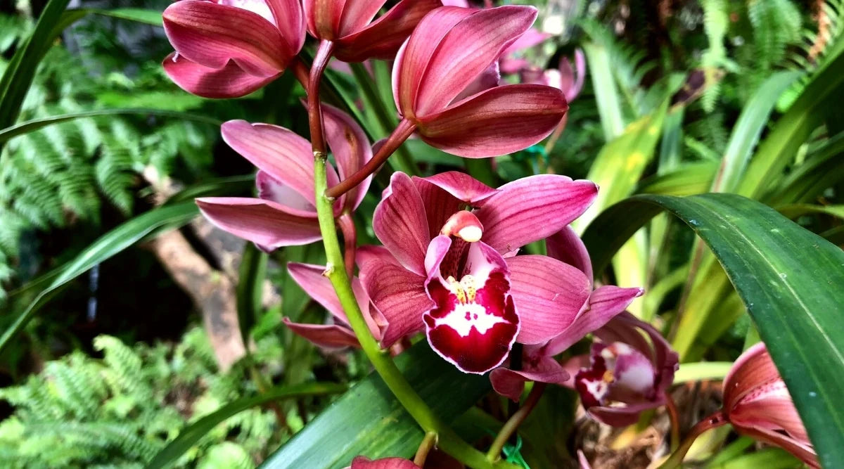 Plant Burgundy Cymbidium Orchid Flower Seeds in nutrient-rich, well-draining soil. Prefer a sunny to partial shade location. Regular watering according to climate needs. Enhances climate-smart gardening, promoting sustainable practices.